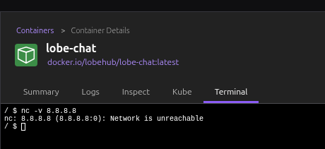The image that lobe-chat comes is very minimal, so I'm using nc or netcat to test out network request